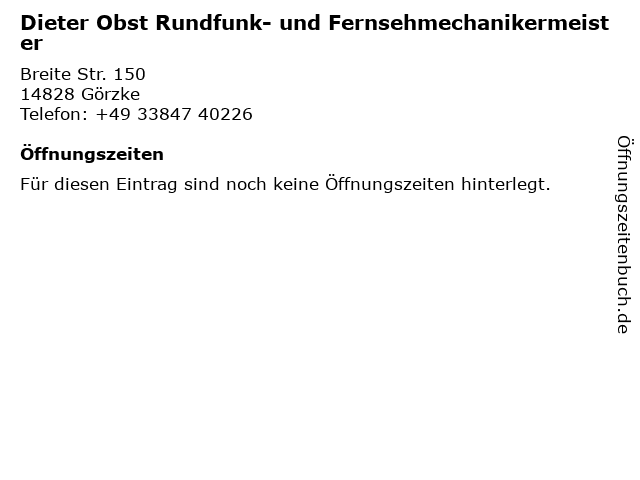 | Dieter Obst Rundfunk- und Fernsehmechanikermeister anrufen | |