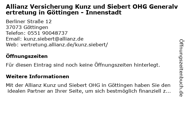 | Allianz Versicherung Kunz und Siebert OHG Generalvertretung in Göttingen - Innenstadt anrufen | |