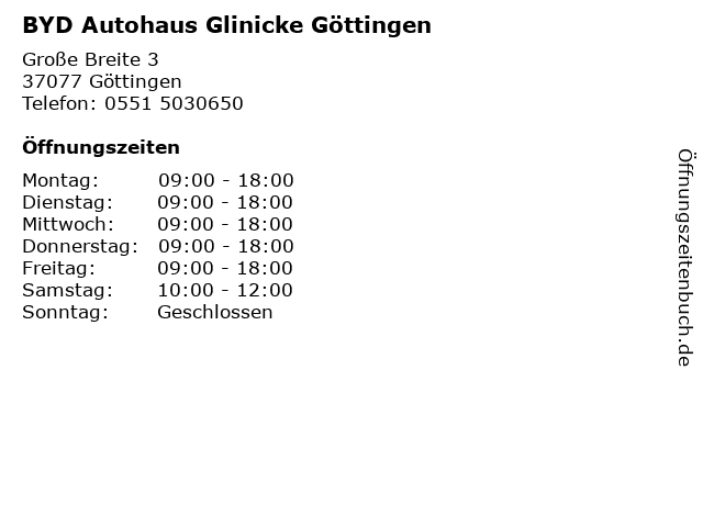 Branchen & Suchbegriffe zu BYD Autohaus Glinicke Göttingen:autohaus, autovermietung, autowerkstatt, byd, gebrauchtwagenhändler, geschäft für autozubehör, glinicke |