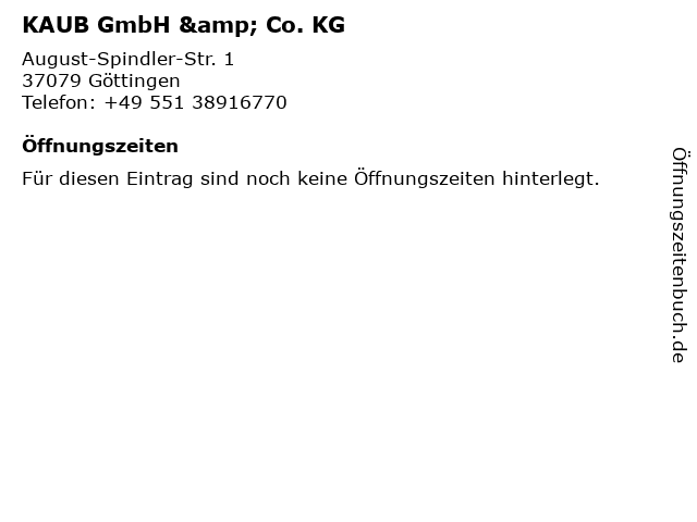 | Öffnungszeiten KAUB GmbH & Co. KG in Göttingen anzeigen | |