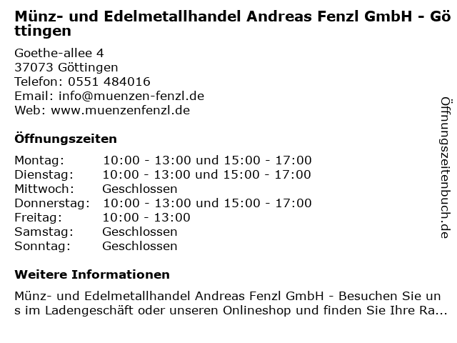 Branchen & Suchbegriffe zu Münz- und Edelmetallhandel Andreas Fenzl GmbH - Göttingen:andreas, antiquitätengeschäft, edelmetallhandel, fenzl, goldhändler, münz |