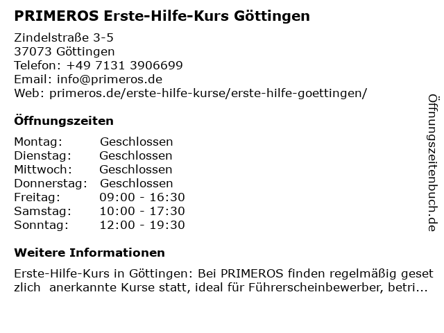 Branchen & Suchbegriffe zu PRIMEROS Erste-Hilfe-Kurs Göttingen:erste, erste hilfe am unfallort, erste hilfe kurs, erste-hilfe, erste-hilfe-kurs, führerschein sehtest, herz-lungen-wiederbelebung, herzinfarkt, hilfe, kurs, primeros, schlaganfall, stabile seitenlage, verbandmaterial, weiterbildung |