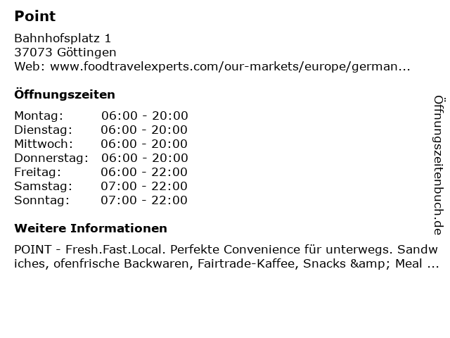 | Öffnungszeiten Point in Göttingen anzeigen | |