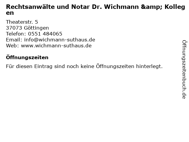 3 Burghkhard von Samson-Himmelstjerna Rechtsanwalt und Notar (Entfernung: 0,20 km) Theaterstr. 12, 37073 Göttingen 5 Rechtsanwälte und Notare Amthauer Rohde & Paulini (Entfernung: 0,37 km) Theaterstr. 5, 37073 Göttingen 6 |