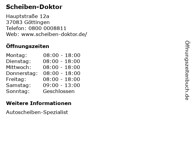 | Öffnungszeiten Scheiben-Doktor in Göttingen anzeigen | |