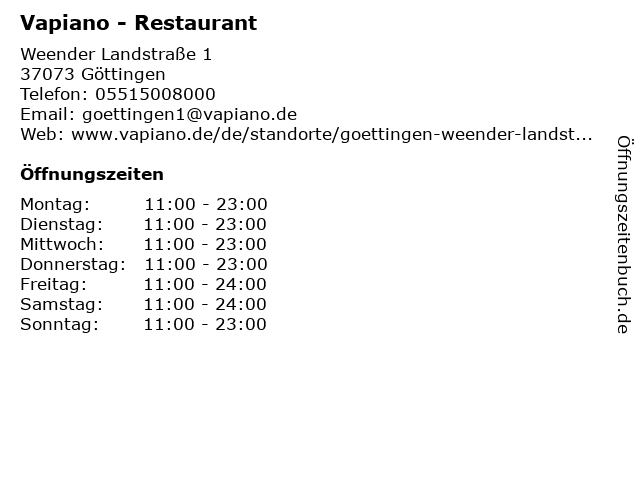 | Öffnungszeiten Vapiano - Restaurant in Göttingen anzeigen | |