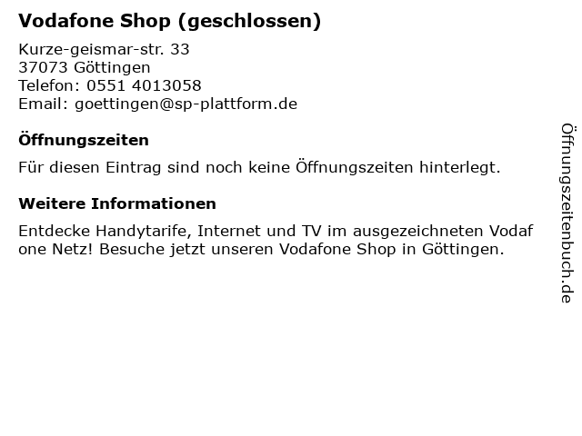 Branchen & Suchbegriffe zu Vodafone Shop (geschlossen):geschlossen, geschäft für handyzubehör, internetanbieter, kabelanschlüsse und satellitenschüsseln, shop, telefonanbieter, vodafone, wlan |