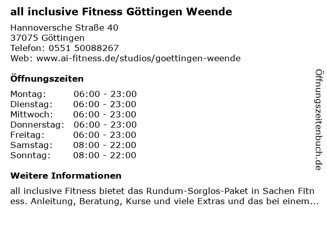 Branchen & Suchbegriffe zu all inclusive Fitness Göttingen Weende:all, fitness, hallensport, inclusive, weende, wellness |