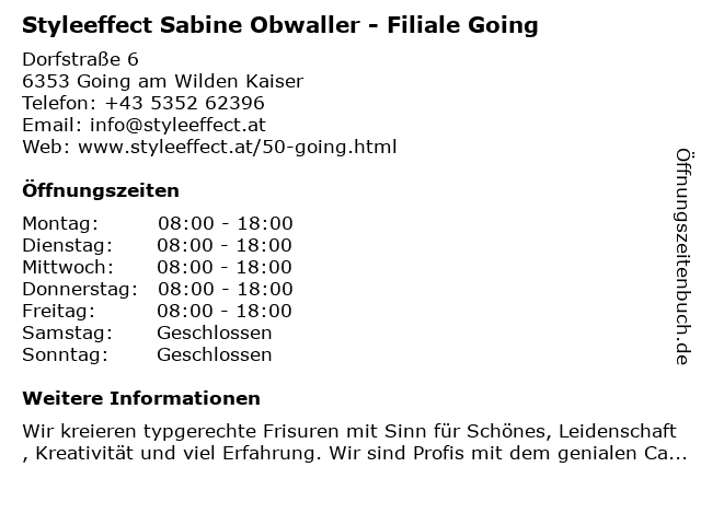 2 Styleeffect Sabine Obwaller (Entfernung: 7,95 km) Dechant-Wieshoferstraße 10, 6380 St. Johann in Tirol 6 |