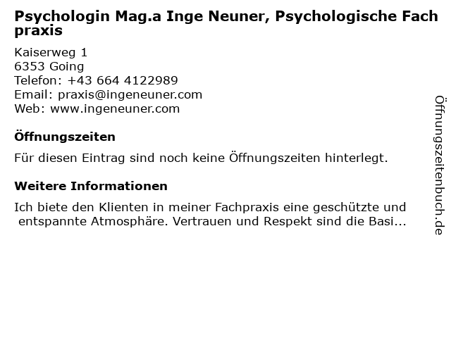 | Psychologin Mag.a Inge Neuner, Psychologische Fachpraxis anrufen | |