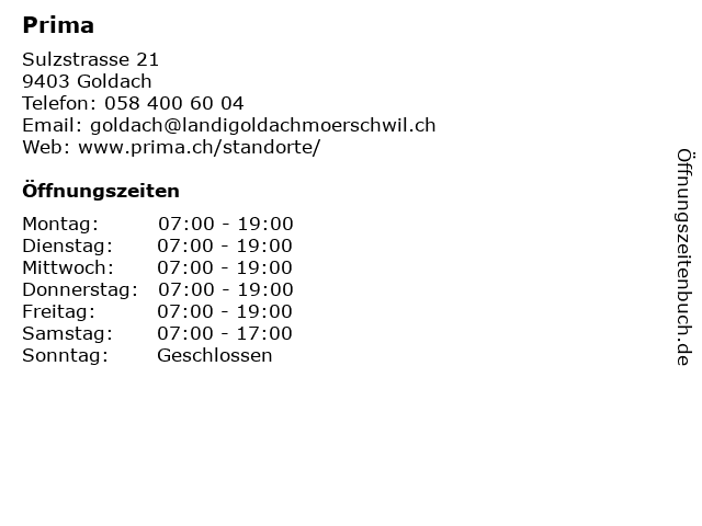 | Öffnungszeiten Prima in Goldach anzeigen | |