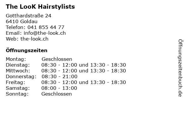 | Öffnungszeiten The LooK Hairstylists in Goldau anzeigen | |
