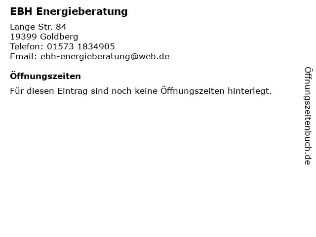 | Öffnungszeiten EBH Energieberatung in Goldberg anzeigen | |