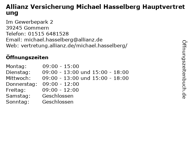 1 Allianz Versicherung Mario Schumann Hauptvertretung (Entfernung: 3,28 km) Im Heidefeld 28, 39175 Wahlitz 3 Allianz Versicherung Urbanczyk und Völksch GbR Hauptvertretung (Entfernung: 8,28 km) Steinstraße 38, 39218 Schönebeck (Elbe) 4 Allianz Versicherung Antje Schellin Hauptvertretung (Entfernung: 9,90 km) Friedrichstraße 70 a, 39218 Schönebeck (Elbe) 5 Allianz Versicherung Torsten Ulrich Hauptvertretung (Entfernung: 12,42 km) Lindenstraße 1 a, 39291 Möckern 6 AXA Versicherung - Hauptvertretung Frank-Amadeus Wegener (Entfernung: 13,88 km) Leipziger Str. 6, 39112 Magdeburg |