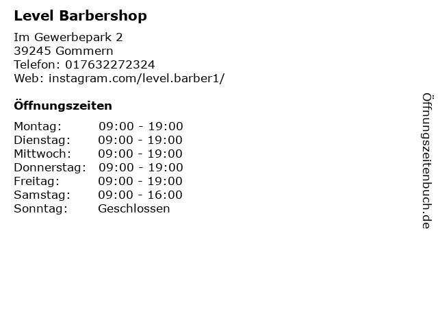 | Öffnungszeiten Level Barbershop in Gommern anzeigen | |