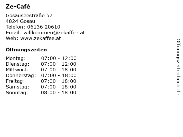 | Öffnungszeiten Ze-Café in Gosau anzeigen | |