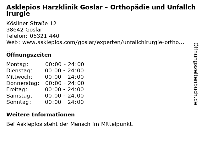 Branchen & Suchbegriffe zu Asklepios Harzklinik Goslar - Orthopädie und Unfallchirurgie:asklepios, goslar, harzklinik, orthopädie, unfallchirurgie  |