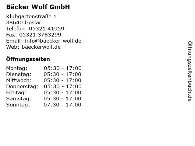 | Öffnungszeiten Bäcker Wolf GmbH in Goslar anzeigen | |