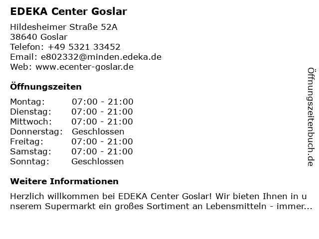 | Öffnungszeiten EDEKA Center Goslar in Goslar anzeigen | |