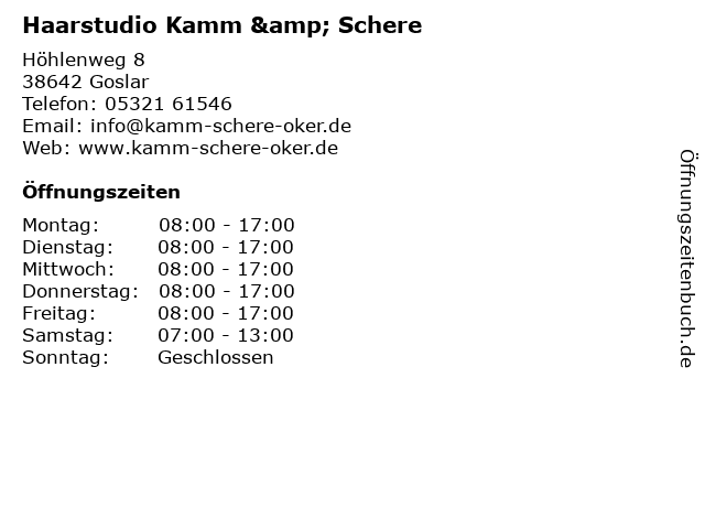 | Öffnungszeiten Haarstudio Kamm & Schere in Goslar anzeigen | |