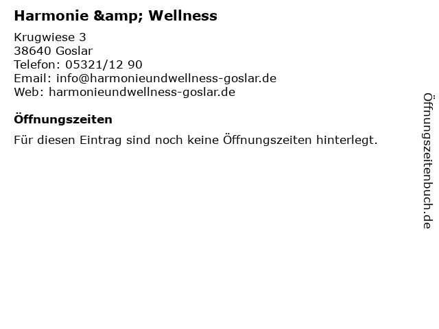 | Öffnungszeiten Harmonie & Wellness in Goslar anzeigen | |