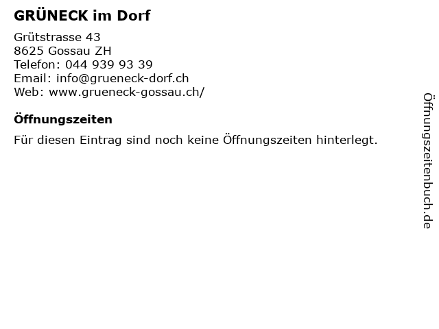 | Öffnungszeiten GRÜNECK im Dorf in Gossau ZH anzeigen | |