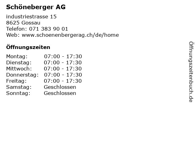 | Öffnungszeiten Schöneberger AG in Gossau anzeigen | |