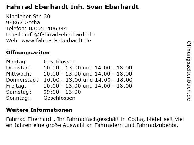 Branchen & Suchbegriffe zu Fahrrad Eberhardt Inh. Sven Eberhardt:eberhardt, fahrrad, sven |