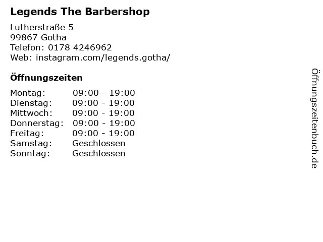 | Öffnungszeiten Legends The Barbershop in Gotha anzeigen | |