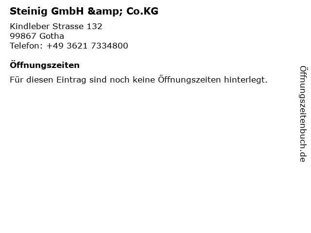 | Öffnungszeiten Steinig GmbH & Co.KG in Gotha anzeigen | |