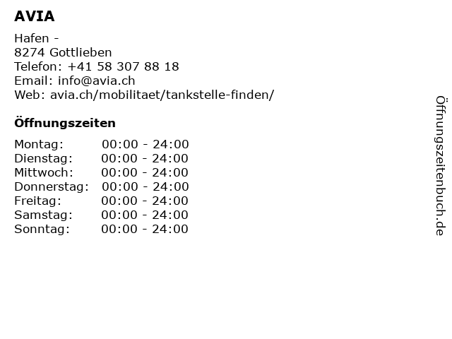 | Öffnungszeiten AVIA in Gottlieben anzeigen | |