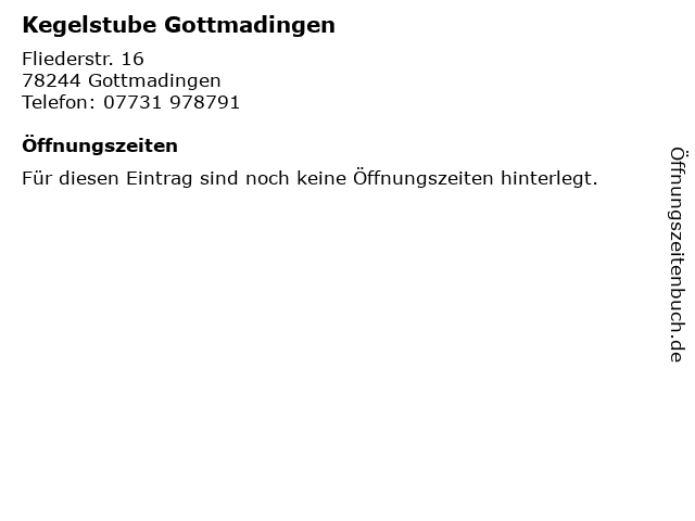 | Öffnungszeiten Kegelstube Gottmadingen in Gottmadingen anzeigen | |