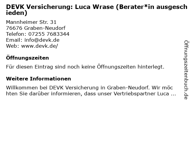 | DEVK Versicherung: Luca Wrase (Berater*in ausgeschieden) anrufen | |