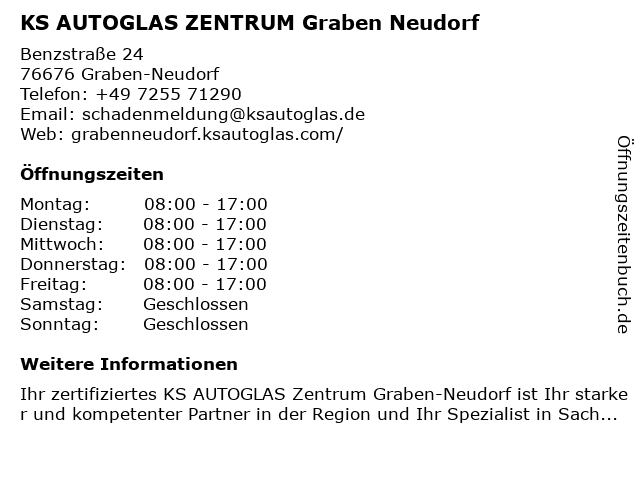 5 KS AUTOGLAS ZENTRUM Waghäusel-Oberhausen (Entfernung: 9,89 km) Hoeber-und-Mandelbaum-Straße 3b, 68794 Oberhausen-Rheinhausen 6 |
