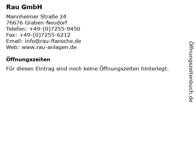 | Öffnungszeiten Rau GmbH in Graben-Neudorf anzeigen | |