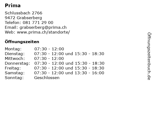 | Öffnungszeiten Prima in Grabserberg anzeigen | |