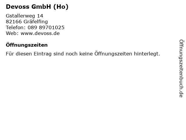 | Adresse Devoss GmbH (Ho) in Gräfelfing anzeigen |