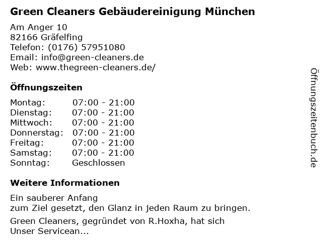 Branchen & Suchbegriffe zu Green Cleaners Gebäudereinigung München:bauendreinigung, büro- und praxisreinigung, cleaners, fensterputzer, gebäudereinigung, green, grundreinigung, grundreinigung nach baustellenende, maler- und lackierer, polsterreiniger, putzarbeiten, reinigungsfirma, teppichreinigung, unterhaltsreinigung |