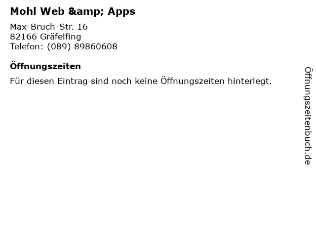 | Öffnungszeiten Mohl Web & Apps in Gräfelfing anzeigen | |