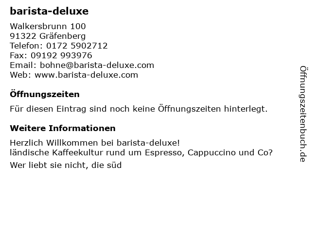 | Öffnungszeiten barista-deluxe in Gräfenberg anzeigen | |