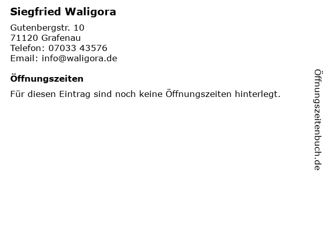 | Öffnungszeiten Siegfried Waligora in Grafenau anzeigen | |