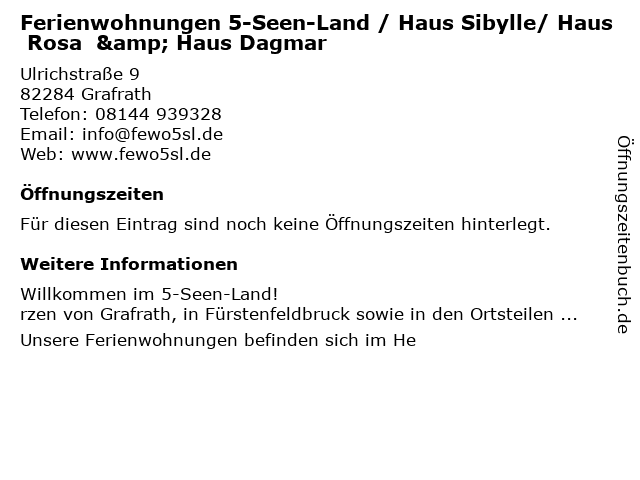 | Ferienwohnungen 5-Seen-Land / Haus Sibylle/ Haus Rosa & Haus Dagmar anrufen | |