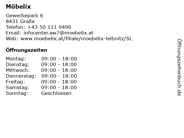 | Öffnungszeiten Möbelix in Gralla anzeigen | |