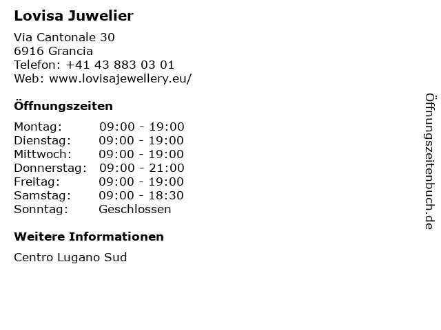 | Öffnungszeiten Lovisa Juwelier in Grancia anzeigen | |
