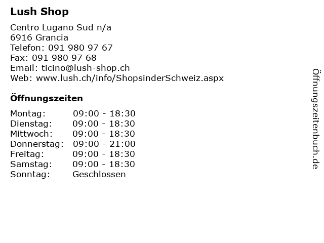 | Öffnungszeiten Lush Shop in Grancia anzeigen | |