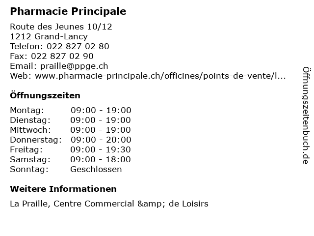 | Öffnungszeiten Pharmacie Principale in Grand-Lancy anzeigen | |