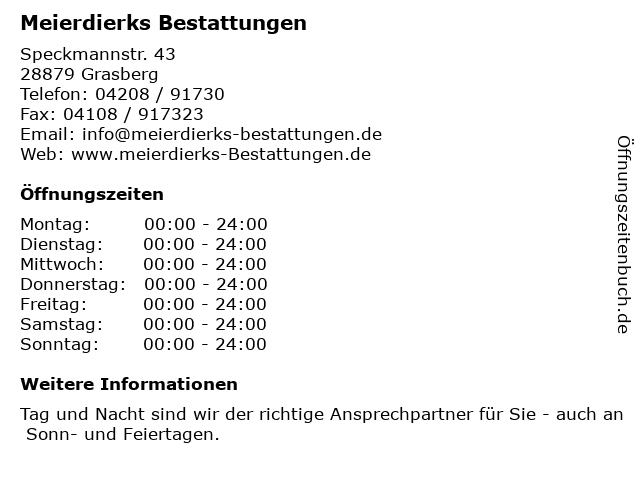 | Öffnungszeiten Meierdierks Bestattungen in Grasberg anzeigen | |