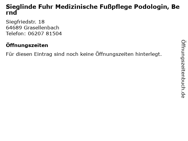 | Sieglinde Fuhr Medizinische Fußpflege Podologin, Bernd anrufen | |