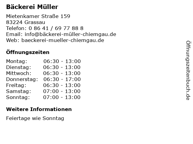 | Öffnungszeiten Bäckerei Müller in Grassau anzeigen | |