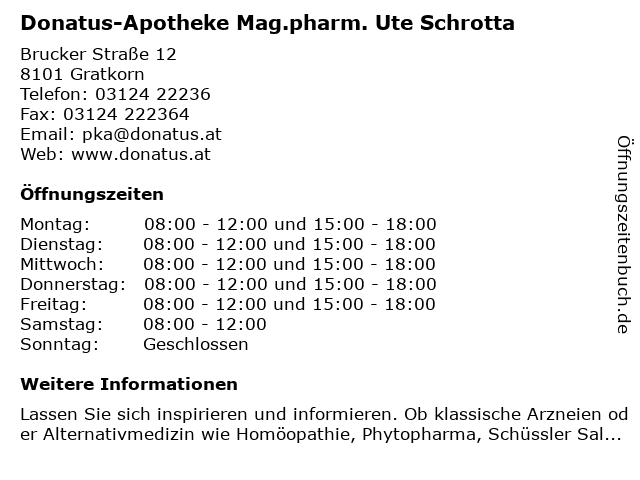 Branchen & Suchbegriffe zu Donatus-Apotheke Mag.pharm. Ute Schrotta:apotheke, donatus, mag.pharm., schrotta, ute |